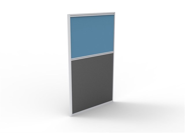 The slimline 30mm deep Rapid Screen is easy to assemble, pinnable with fabric upholstery above desk height and charcoal melamine under the desk to minimise wear