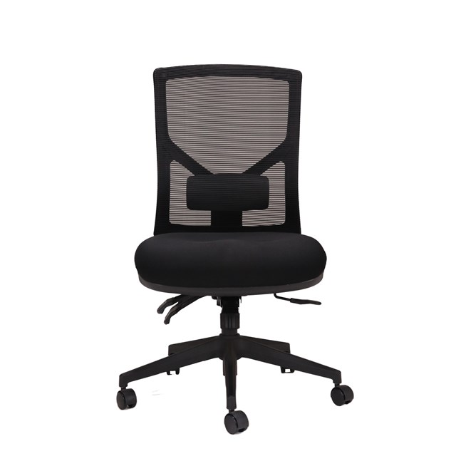 The popular Breeze Mesh Chair features a black mesh back with black fabric seat pan, height adjustable lumbar support and a quality 5 star spider base on castors