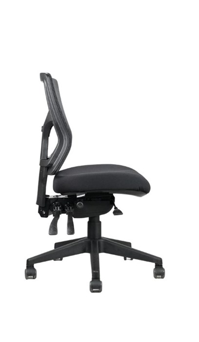 The Rapidline Milan is a mesh back operator chair which is fully ergonomic and has a 4 lever heavy-duty mechanism with seat slide