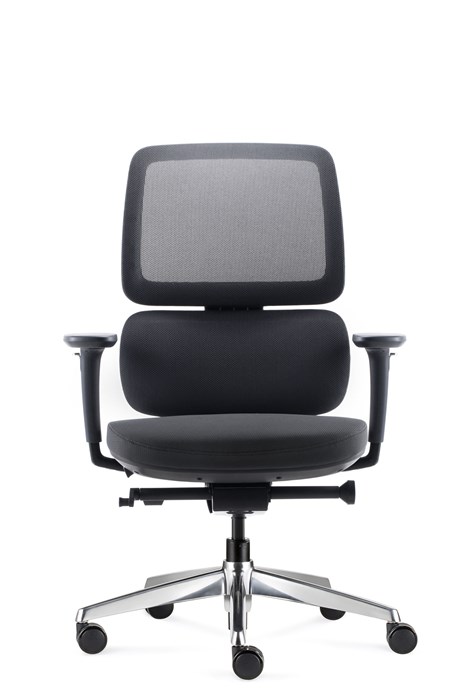 Orca Mesh Back Executive Chair Heavy Duty F020S Synchro Mechanism With 4 Locking Positions Black Korean High Elastic Mesh Back Rest & Black Fabric Upholstered Seat Pan Polished Aluminium J-Bar Ratchet Back Rest Adjustment Which Allows The Lumbar To Adjust In Dual Direction Lumbar & Back Rest Have an 80mm Adjustment Stroke Black 5 Star Base With Black 60/25 PU Castors Designed In Scandinavia 135 Kg Weight Rating Greenguard Gold Approved BIFMA Tested And Certified 10 Year Warranty