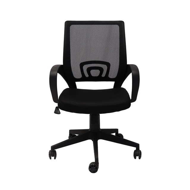 Home Office Or Meeting Chair In Black Single Point Lock Mechanism Black Mesh Back Rest With Lumbar Support - Black Upholstered Seat Pan Black 5 Star Spider Base On Castors - Fixed Black PVC Loop Arms Tested To BS EN 12520:2015 90 Kg Weight Rating 1 Year Warranty